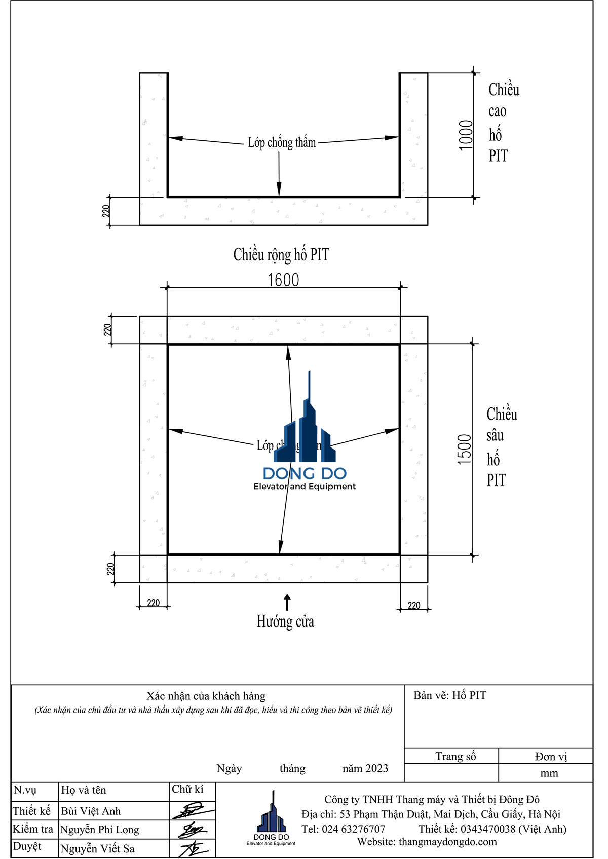 - Chừa lỗ để lắp cửa tầng và hộp nút số